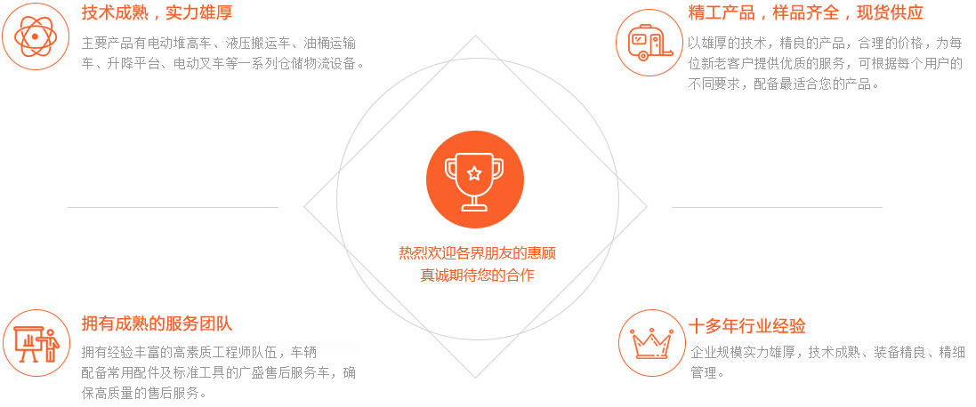 天津市廣盛搬運(yùn)機(jī)械有限公司成立于2003年,是在國(guó)內(nèi)倉(cāng)儲(chǔ)搬運(yùn)設(shè)備具有一定地位的專(zhuān)業(yè)生產(chǎn)制造服務(wù)商。主要產(chǎn)品有:電動(dòng)堆高車(chē)、液壓搬運(yùn)車(chē)、油桶運(yùn)輸車(chē)、升降平臺(tái)車(chē)、電動(dòng)叉車(chē)等一系列倉(cāng)儲(chǔ)物流設(shè)備。十幾年來(lái),我們一直致力于吸收、引進(jìn)世界物流產(chǎn)品與技術(shù),堅(jiān)持不懈,創(chuàng)新發(fā)展,為國(guó)內(nèi)外客戶(hù)提供安全、可靠、省力、高效、專(zhuān)用的各類(lèi)物流搬運(yùn)產(chǎn)品。